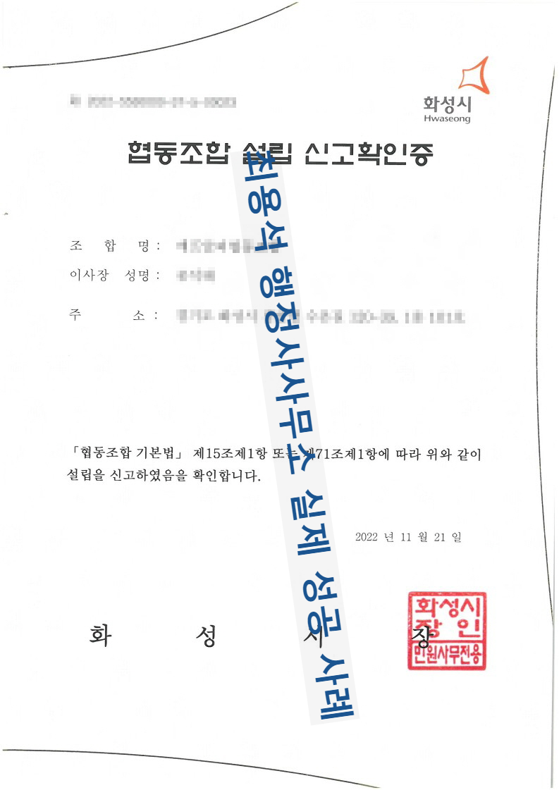 개인사업자는 세무소에 바로 가서 사업자등록증 발급을 받으면서 사업을 개시할 수 있고, 주식회사와 같은 상법상회사는 관할 등기소에서 설립 등기를 한 뒤 세무소에서 사업자등록을 완료하면 되는데, 협동조합은 특이하게도 관할 지방자치단체에 설립 '신고'를 우선한 뒤 관할 등기소의 설립 등기를 거쳐야 됩니다.