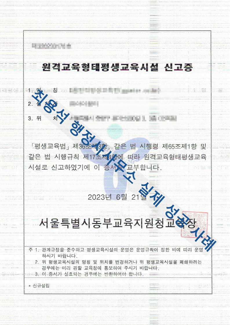 - 평생교육시설 설치 신고서