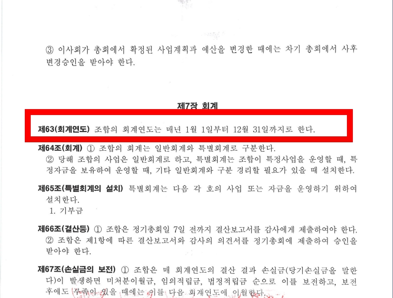 해당 조합의 회계연도의 확인은 조합의 정관에 명시되어 있으니 참고하시면 되겠습니다.