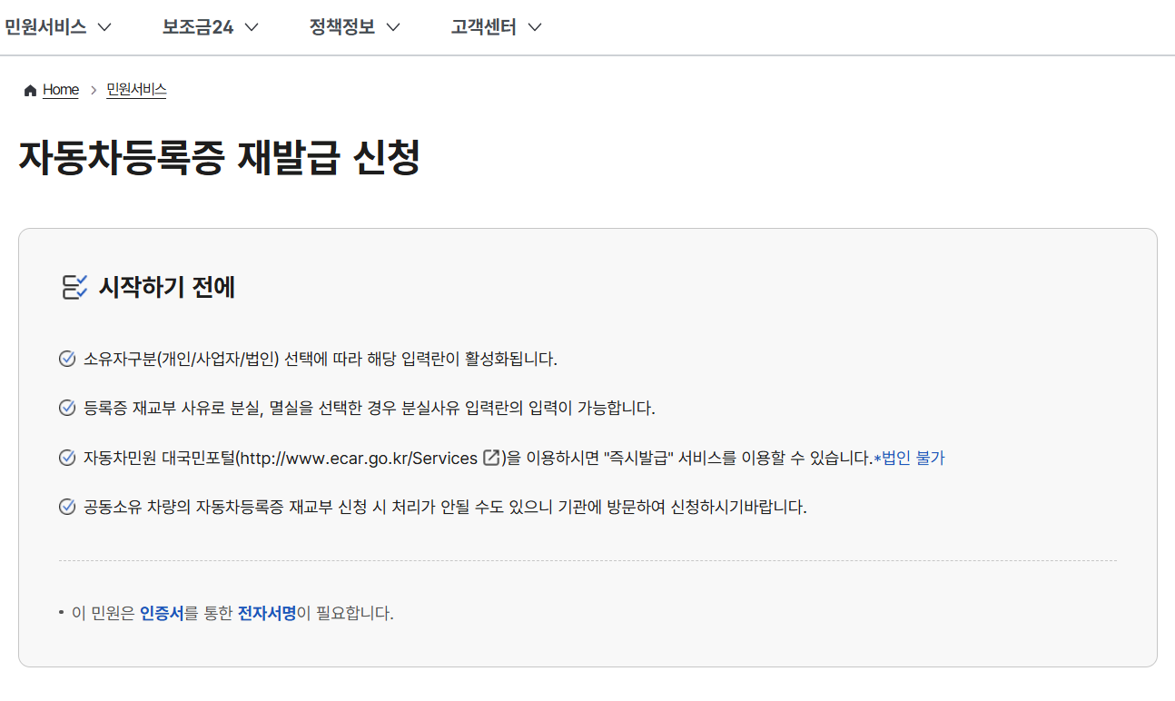 정부 24에서 제공하는 자동차등록증 인터넷 재발급 서비스는 정말 간편합니다. ("자동차 365"사이트에서도 발급 가능) 이제 주민센터에 직접 가지 않아도 언제든지 집에서 클릭 몇 번으로 바로 출력할 수 있으니 꼭 활용해 보세요.
