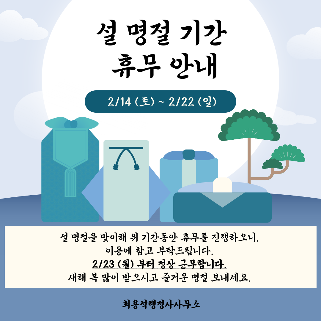 2026년 설 명절 휴무 안내